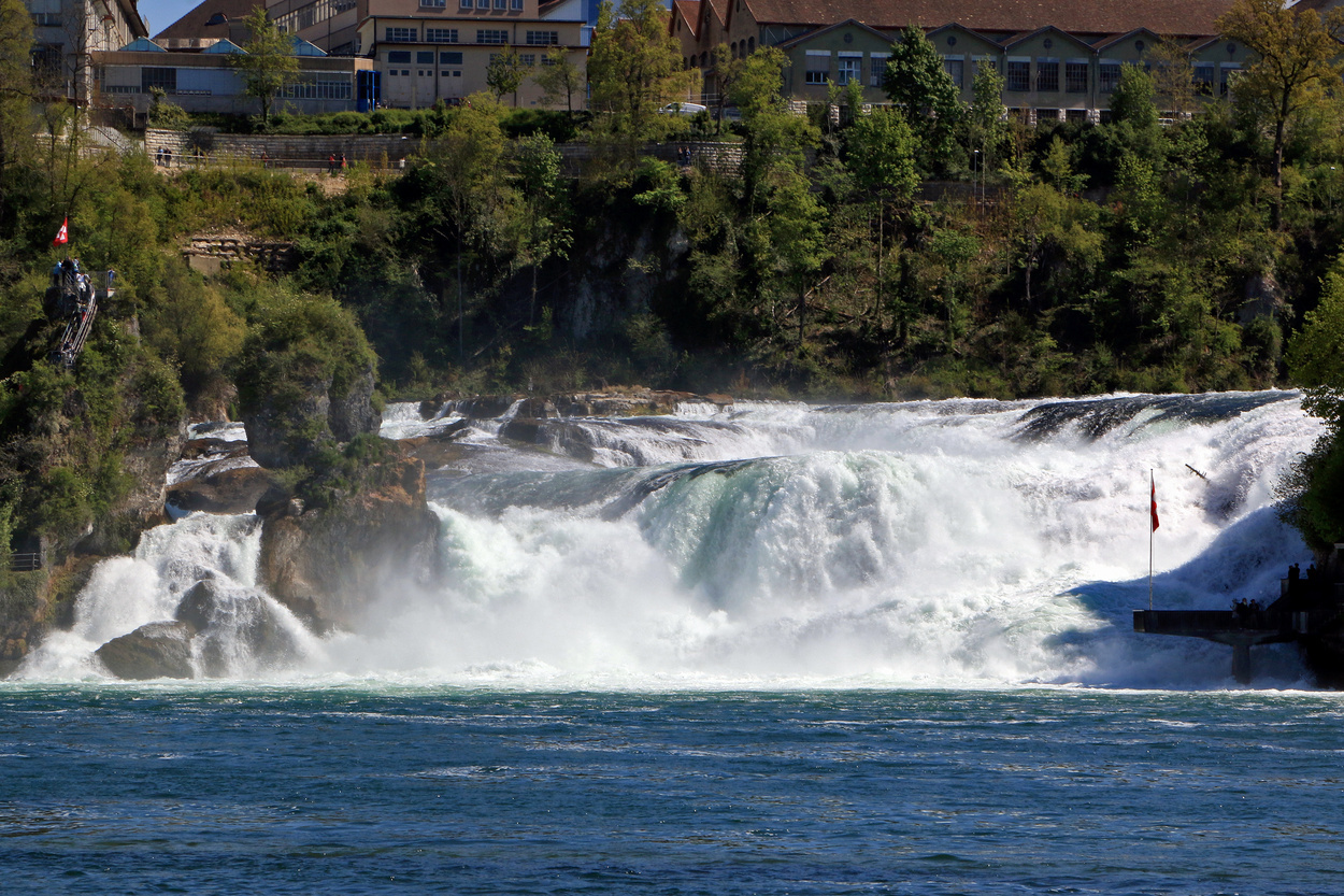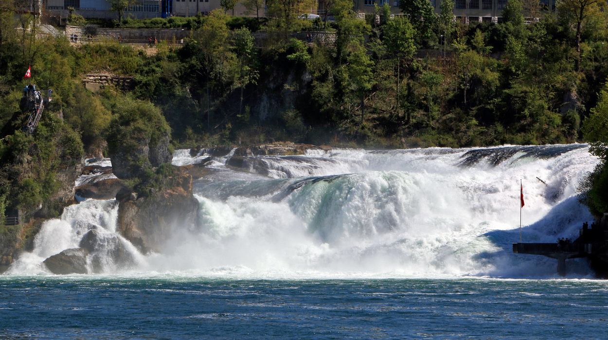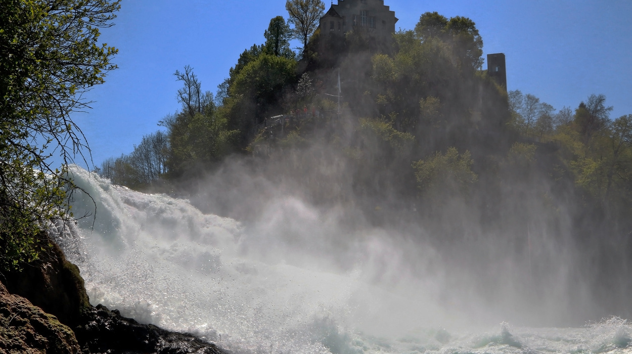 - Nahe der deutsch-schweizer Grenze befindet sich der Rheinfall in Schaffhausen. An der Stelle wo die tosenden Wassermassen 25m in den Abgrund stürzen, erleben die Besucher ein optisches wie auch akustisches Erlebnis eines beeindruckenden Naturschauspiels. Auf beiden Uferseiten befinden sich Aussichtsplattformen über dem Rhein. Ein Ausflug hierhin lässt sich wunderbar mit einem Besuch des Schlosses Laufen kombinieren.